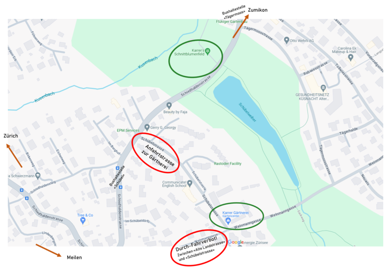 Or by public transport: take the bus 912 or 919 to the stop "Schübel", then walk 5 minutes towards the direction of Zumikon or the next stop is "Tägermoos" this one is just a few steps above the field.